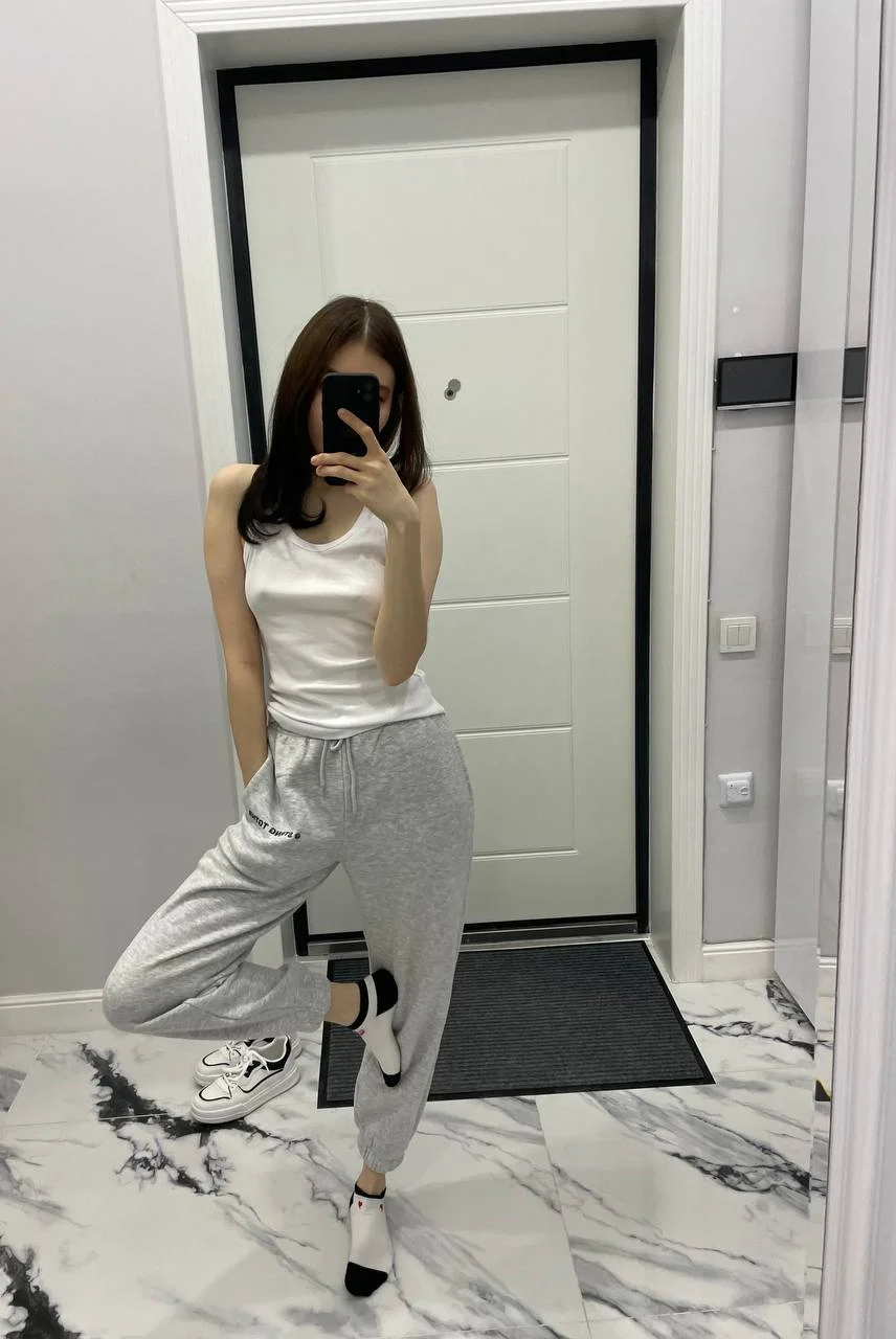 confidently in comfortable athletic wear, capturing a moment of relaxed strength. Her balanced pose and casual grace reflect an easy, natural fitness. The clean, modern space around highlights her calm energy, creating an image that feels fresh, poised, and effortlessly active, blending beauty with quiet determination.